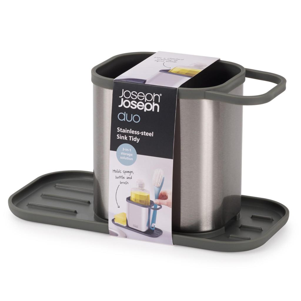 - Aanrechtbakje Joseph Joseph DUO STEEL vertegenwoordigt een elegante en functionele oplossing voor het organiseren van de ruimte rondom de gootsteen in de keuken.