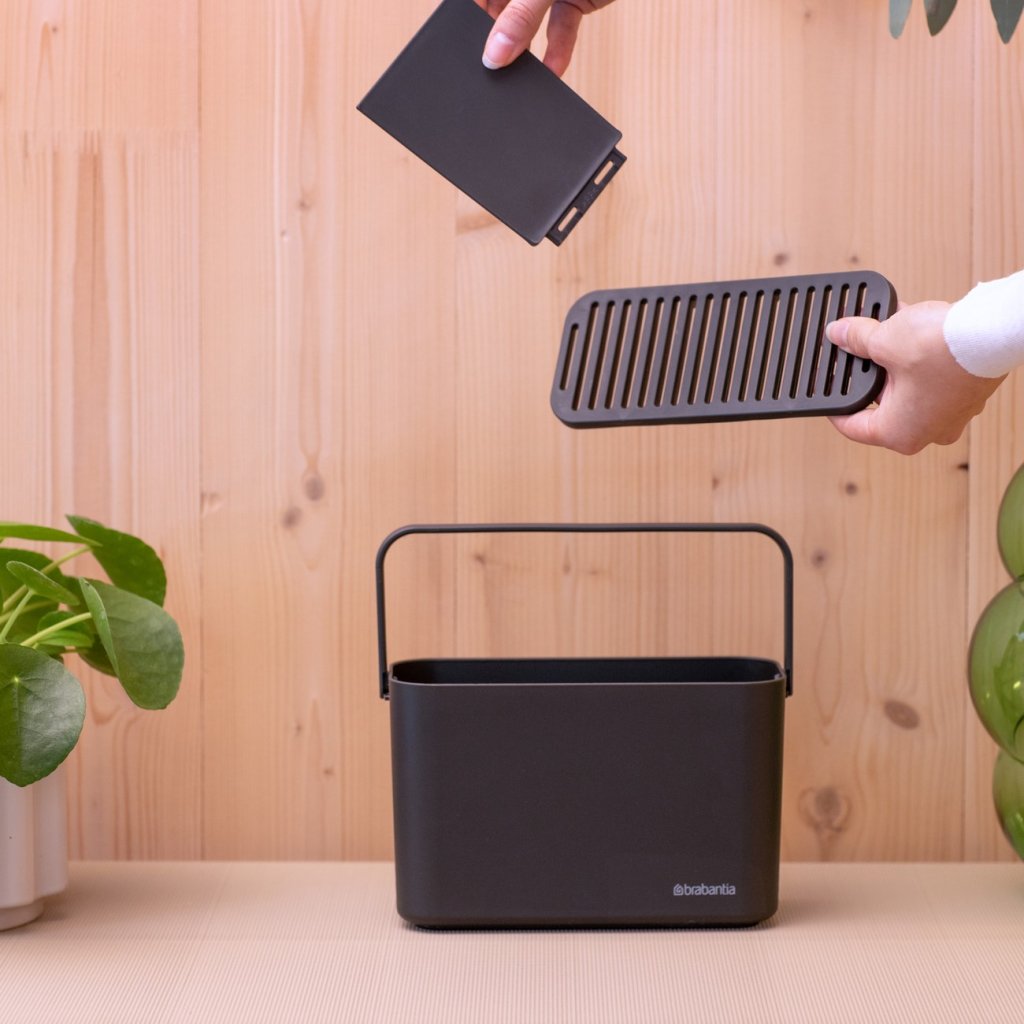 - aanrechtbakje Brabantia SINKSIDE in donkergrijs is een praktische oplossing voor het georganiseerd opbergen van alle schoonmaakspullen voor in de keuken
