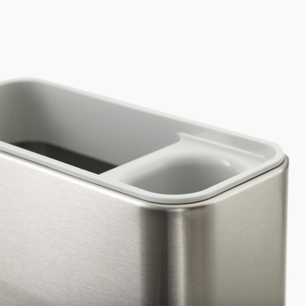 - De organizer is voorzien van aparte compartimenten, een metalen droogrek en een schuine basis voor waterafvoer, en kan voor grondige reiniging eenvoudig worden gedemonteerd.