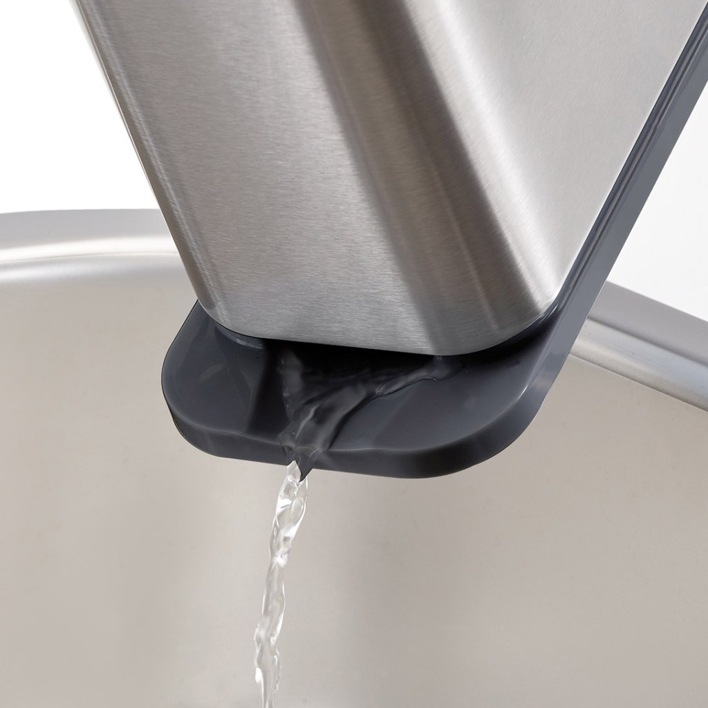 Bezitters van vaatwassers zullen ook profiteren van de inklapbare Surface lekbak. Kwaliteitsmessen en houten keukengerei moeten met de hand worden gewassen. De kleine designstandaard vindt gemakkelijk een plaatsje op elk bureau. De binnenruimte van de container is verdeeld in vier secties. Het opgehoopte water kan gemakkelijk uit de onderste kom worden gegoten.