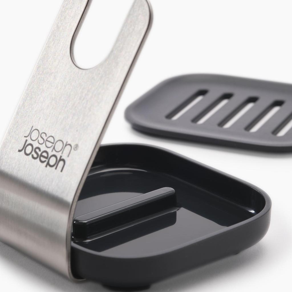 - De geïntegreerde lekbak in de onderzetter vangt overtollig water op en zorgt ervoor dat de gootsteen snel droogt, waardoor de omgeving eromheen droog en schoon blijft.