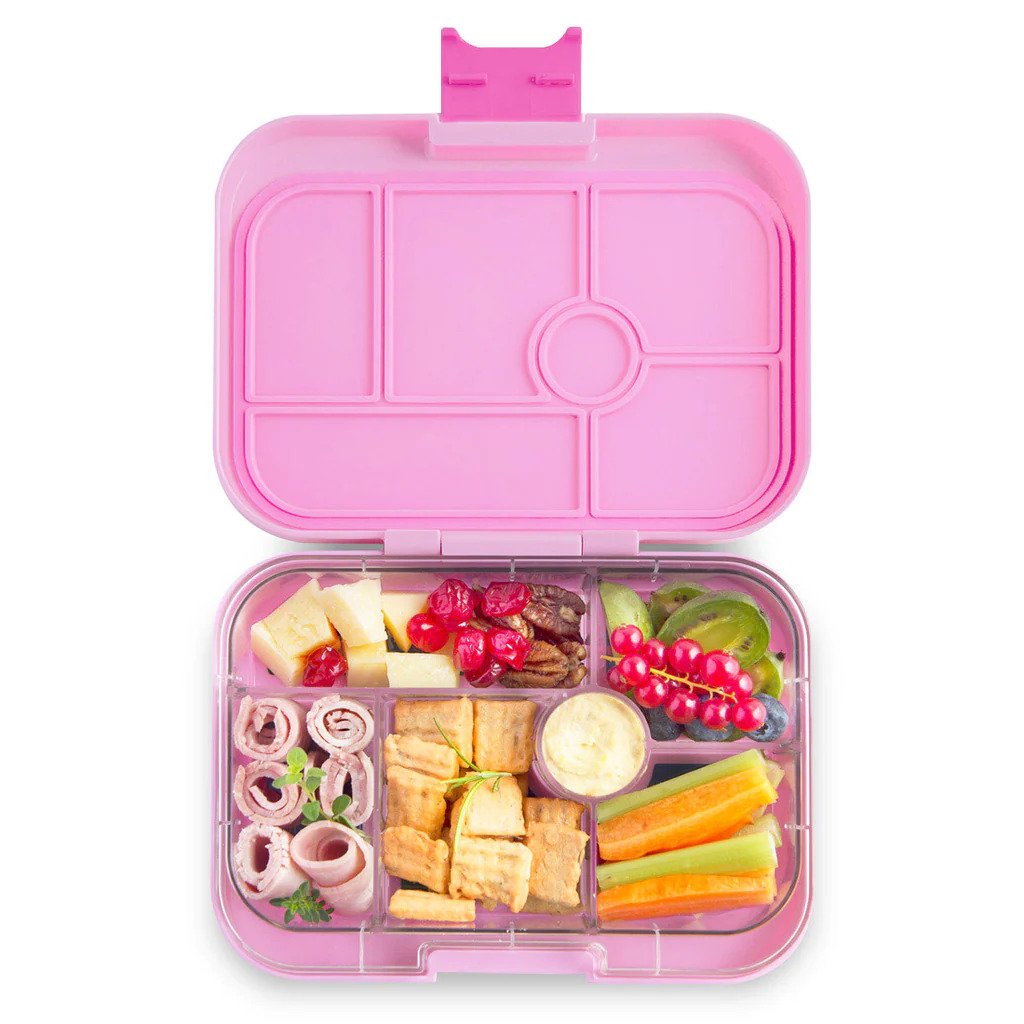 - 6 volledig gescheiden compartimenten waarin je niet alleen fruit, groenten, noten of koekjes kunt doen, maar ook yoghurt, vruchtenmoes of zelfs dip