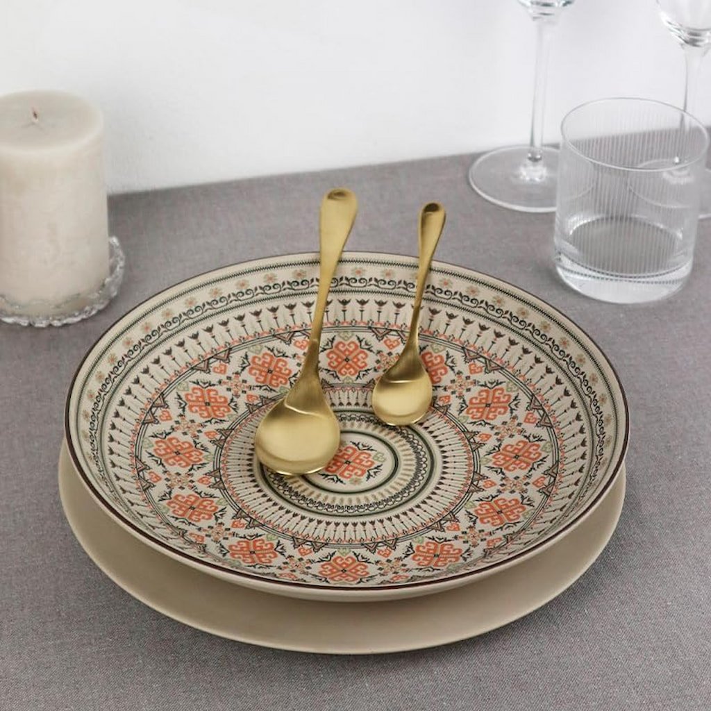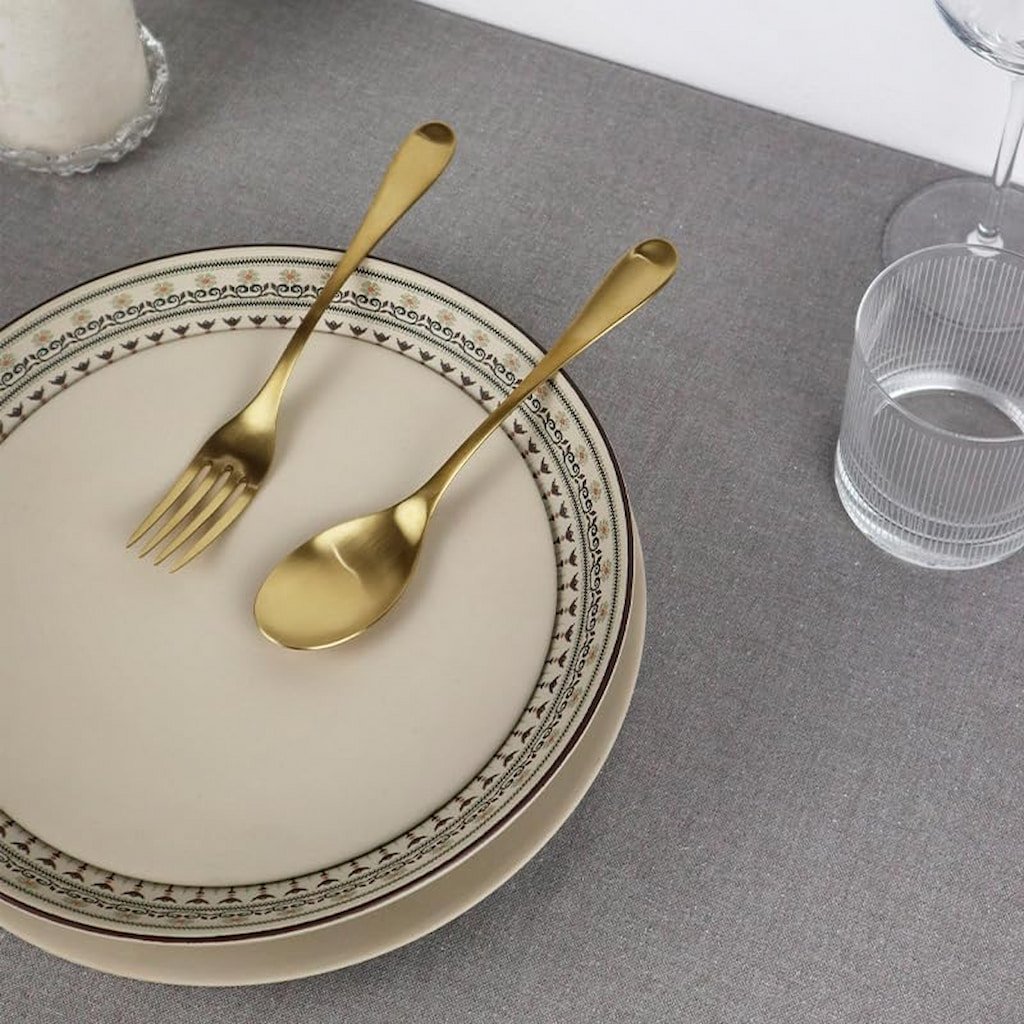 - de matgouden afwerking is opvallend en geeft de tafel een feestelijk en exclusief karakter