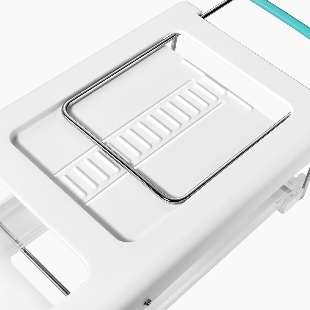 - De voor- en achterclips zorgen voor een stevige bevestiging aan de plank zonder gereedschap en maken het mogelijk om de houder eenvoudig te verplaatsen naar behoefte.
