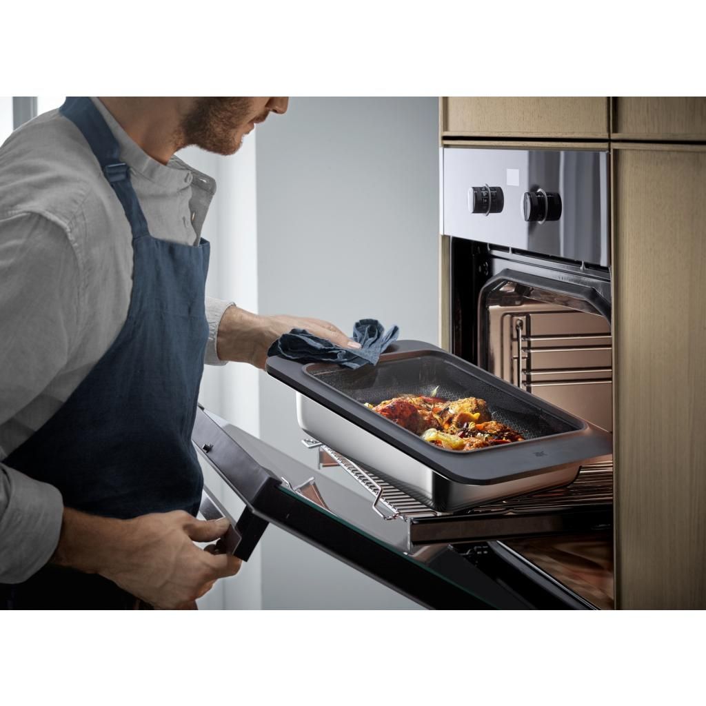 De ProfiResist M ovenschaal maakt deel uit van het modulaire systeem van de WMF Ovenware collectie, die naast de ovenschalen ook 2in1 serveerbodems en deksels omvat (apart verkrijgbaar). Zo kunt u uw eten rechtstreeks uit de oven serveren!