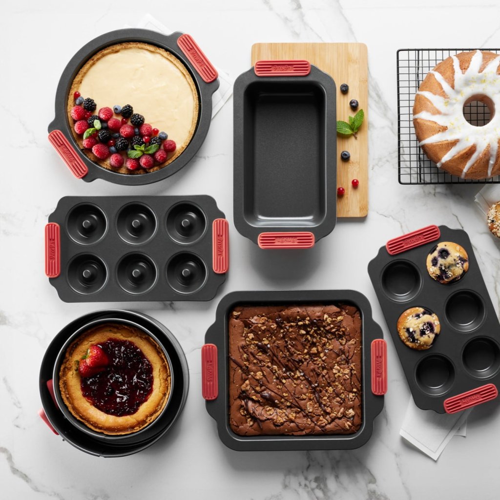 - keramisch oppervlak met antiaanbaklaag zonder PFOA en PFA voorkomt dat deeg blijft plakken en maakt het makkelijker om taarten te kantelen