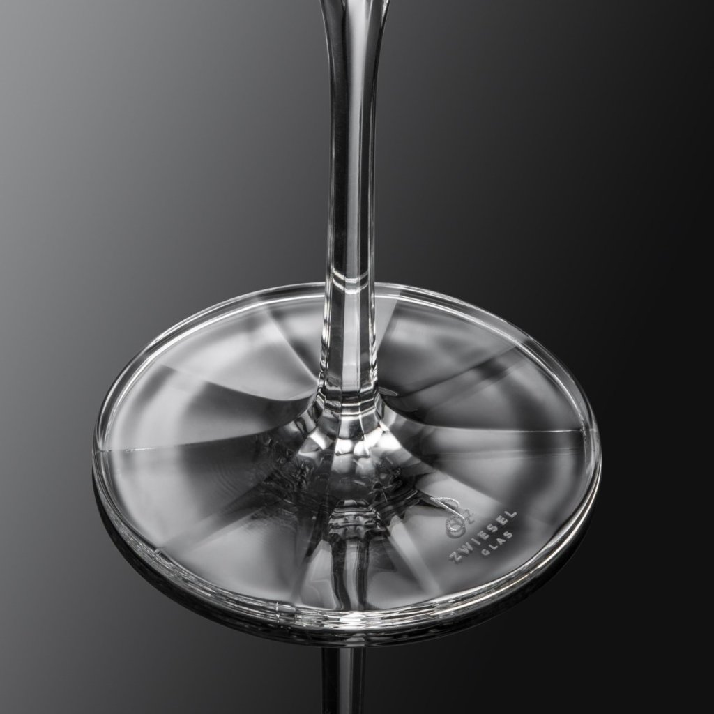 - het bubbelpunt onderin het glas zorgt voor een consistente stroom bubbels en een langdurig frisheidseffect
