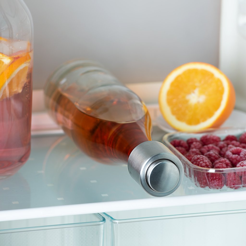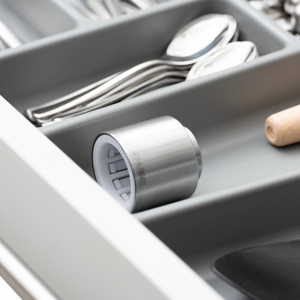 De Clever & More champagne/champagnedop sluit de fles luchtdicht af door hem eenvoudig vast te klikken. Hij gaat gemakkelijk open door de bovenste knop lichtjes in te drukken. Er staat "champagne" op.