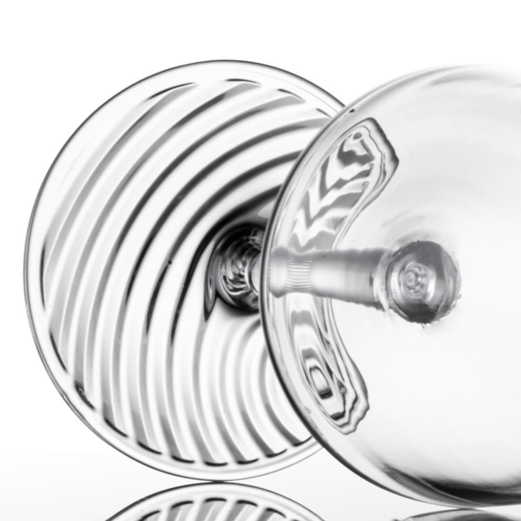 - de brede bokaal en de delicate voet zorgen voor een luchtige en elegante uitstraling, terwijl de bokaal toch stabiel op tafel staat