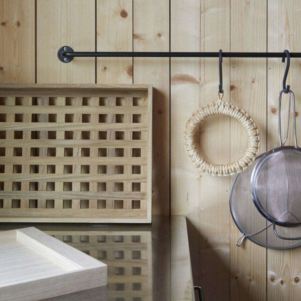 - een dienblad met een opvallende vorm en een roosterbodem die functionaliteit combineert met esthetiek