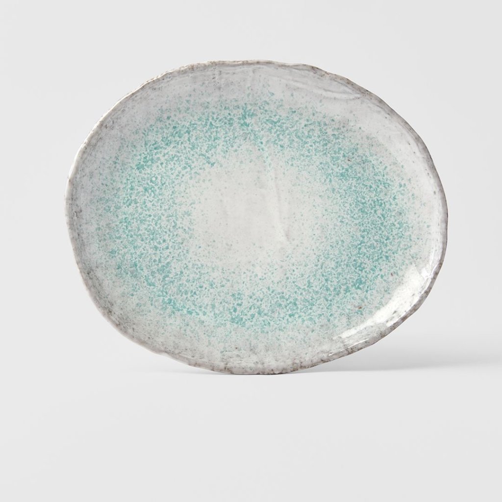 - De ovale schaal dineerbord AQUA SPLASH met een lengte van 30 cm is ontworpen voor het expressief serveren van gerechten en fungeert dankzij haar organische vorm als een dominant element in de moderne eetomgeving.