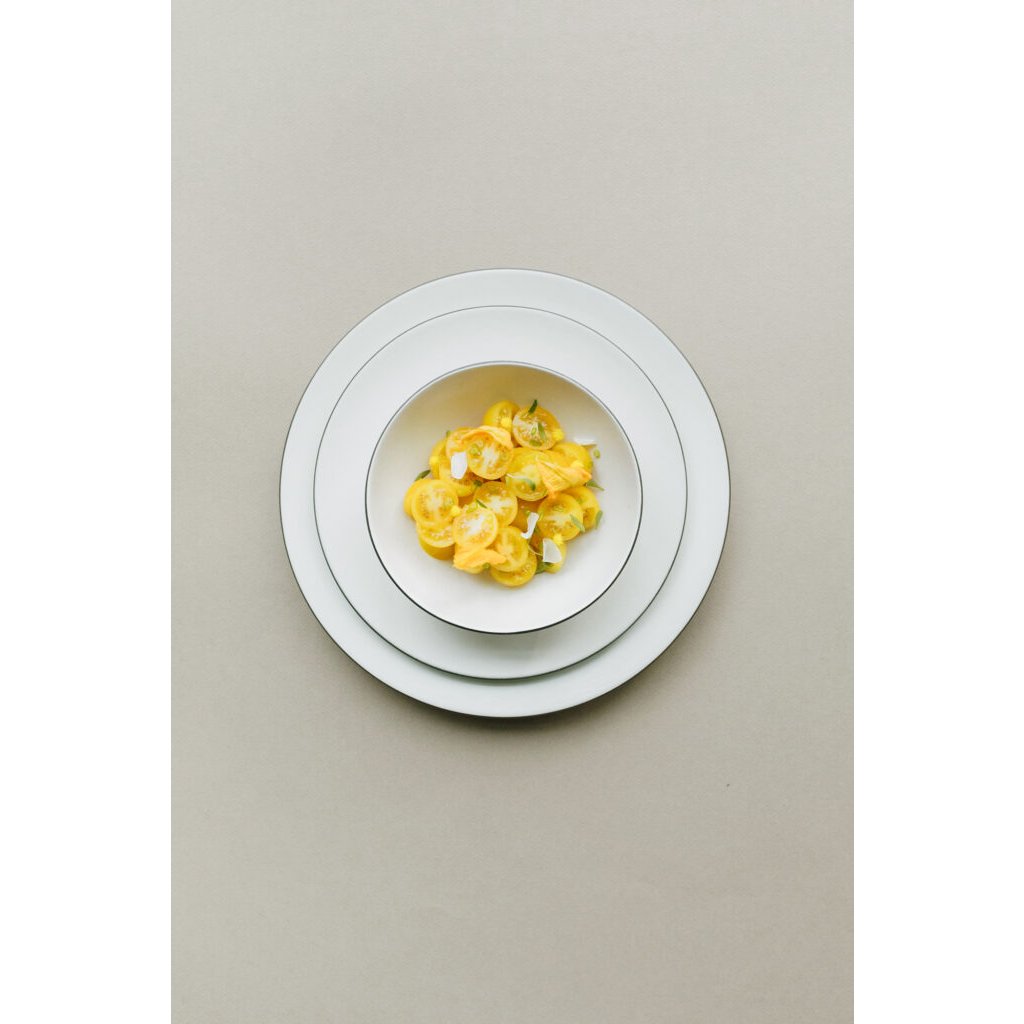 De platte schalen van de Equinoxe-reeks zijn ontworpen om het serveren te vergemakkelijken dankzij hun platte bodem en grote esthetische uitstraling. Deze schattige schaaltjes hebben een zwarte omlijning die hun vorm elegant accentueert. Deze schaal van keramiek zal opvallen en indruk maken op uw eettafel.