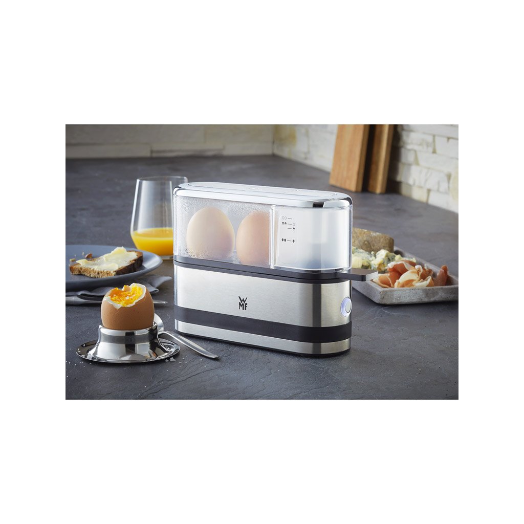 Houdt u van vers gekookte eieren als ontbijt? Dan kunnen wij de KITCHENminis® elektrische eierkoker van het Duitse merk WMF alleen maar aanbevelen. Het is geproduceerd in een compact ontwerp dat ruimte bespaart op het aanrecht.