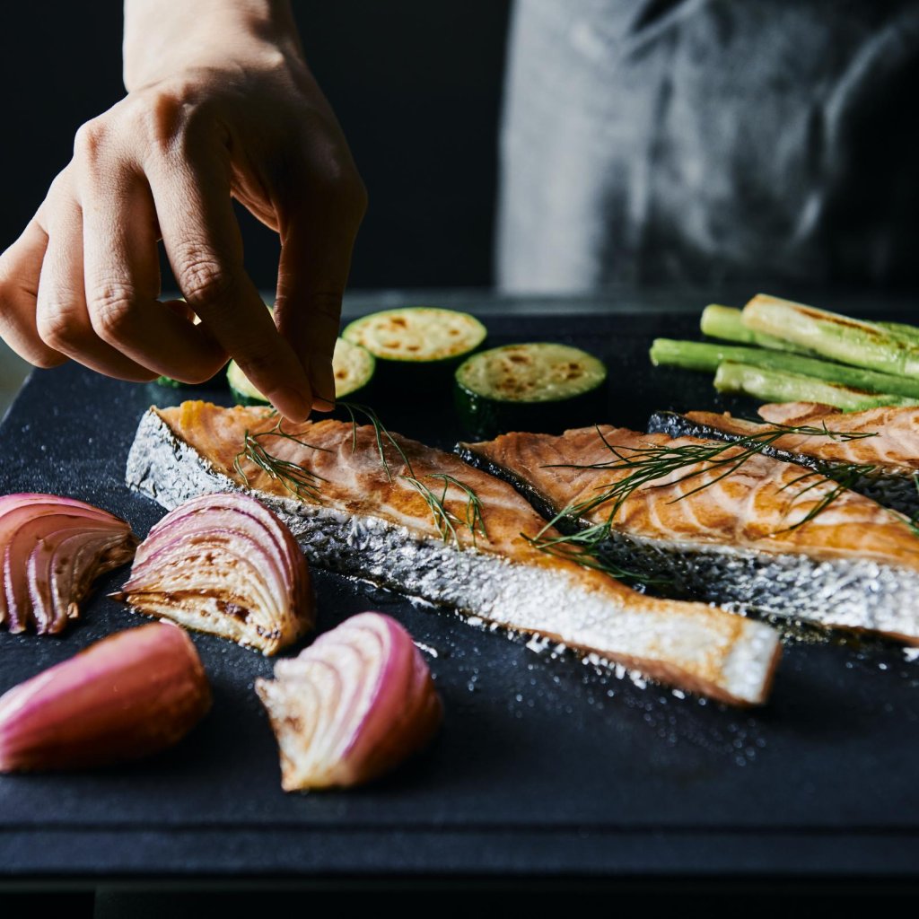 - Hierdoor behoudt de grill een gelijkmatige temperatuur over het hele oppervlak en kan hij snel reageren op een temperatuurdaling wanneer ingrediënten worden toegevoegd, zonder aanbranden of ongelijkmatig bruin worden.
