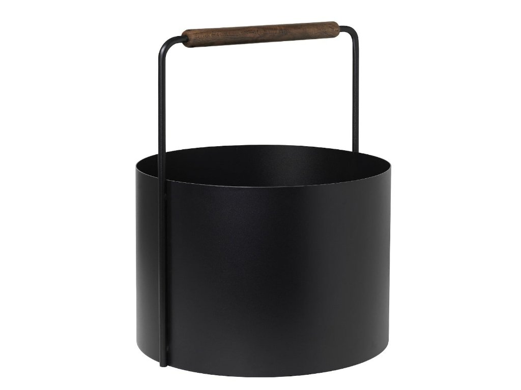 De puristische ASHI-haardhoutkorf met zijn zwarte eikenhouten handvat en matzwarte poedercoating past perfect bij de rest van uw interieur. De brandhoutkorf heeft een inhoud van 24 liter en biedt de perfecte plaats om brandhout op te slaan - onaangename spaanders en stof worden direct in de korf gehouden.
