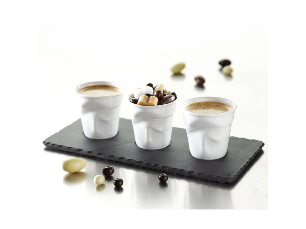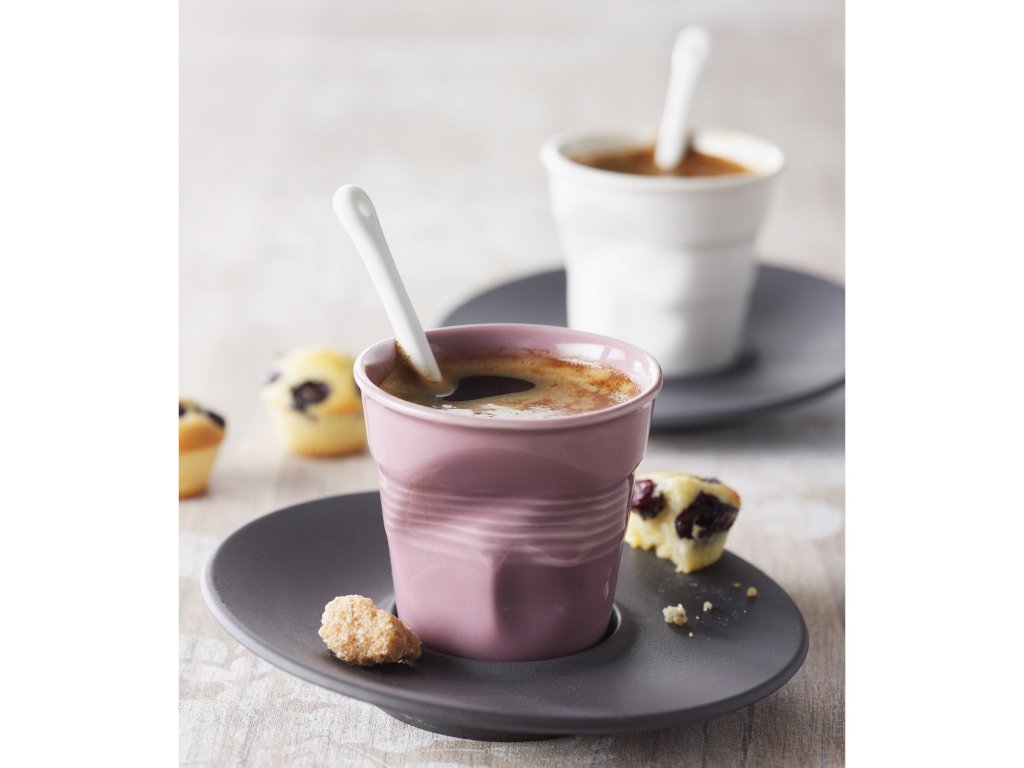 Het multifunctionele espressokopje van de Froissés-serie heeft al veel mensen bekoord met zijn vorm en kleurrijke variaties... Afhankelijk van uw stijl en creativiteit kunt u het niet alleen gebruiken voor het serveren van koffie en espresso, maar ook voor sauzen bij vlees, voor het serveren van ijs of originele Franse eenpersoonsgerechten . Het zal ook een leuke bakvorm blijken te zijn voor muffins en mini bundt cakes. Als u een fan bent van origineel design in huis, kunt u het gebruiken als krijtbeker of cactusplanter. De verbeelding kent geen grenzen.