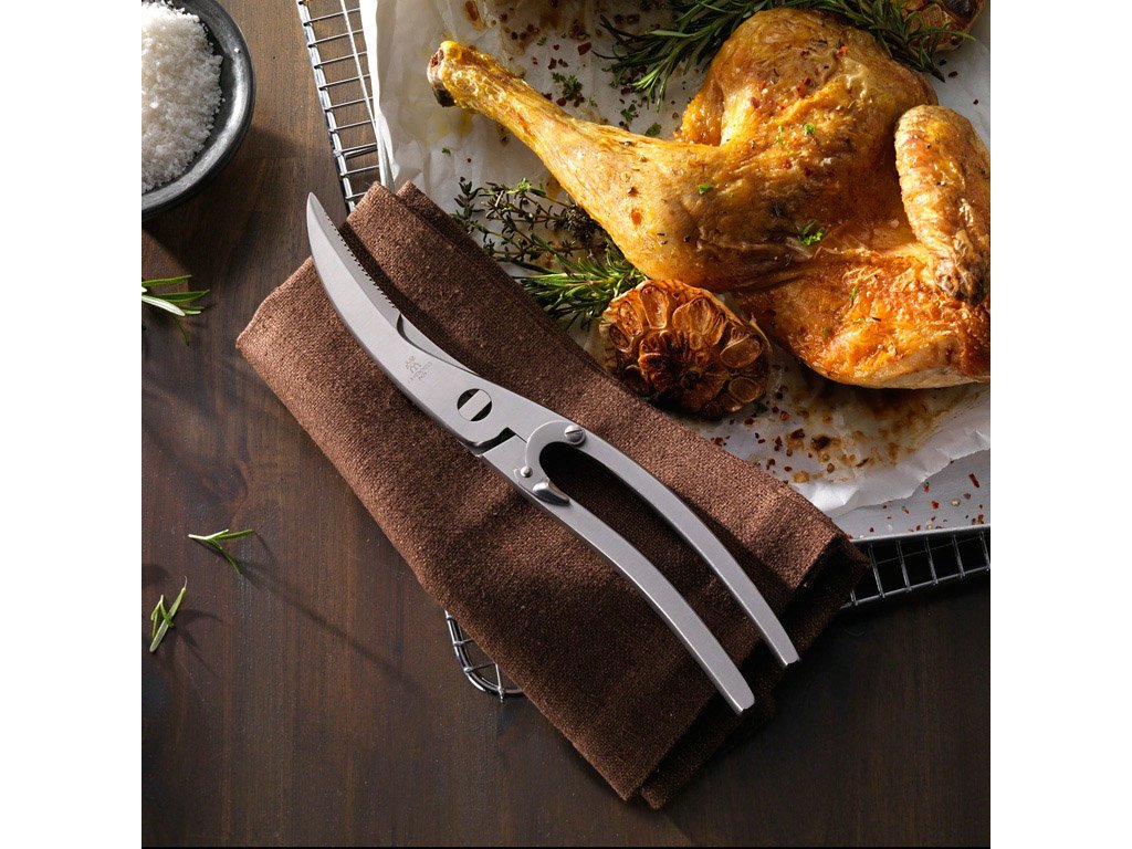 Pluimveescharen van ZWILLING J. A. Henckels van hoogwaardig roestvrij staal zijn robuust, uiterst betrouwbaar en zorgen voor een optimale krachtoverbrenging bij het snijden van gevogelte. De bottenbreker en het gekartelde blad zorgen ervoor dat u uw gevogelte gemakkelijk en schoon kunt snijden.
