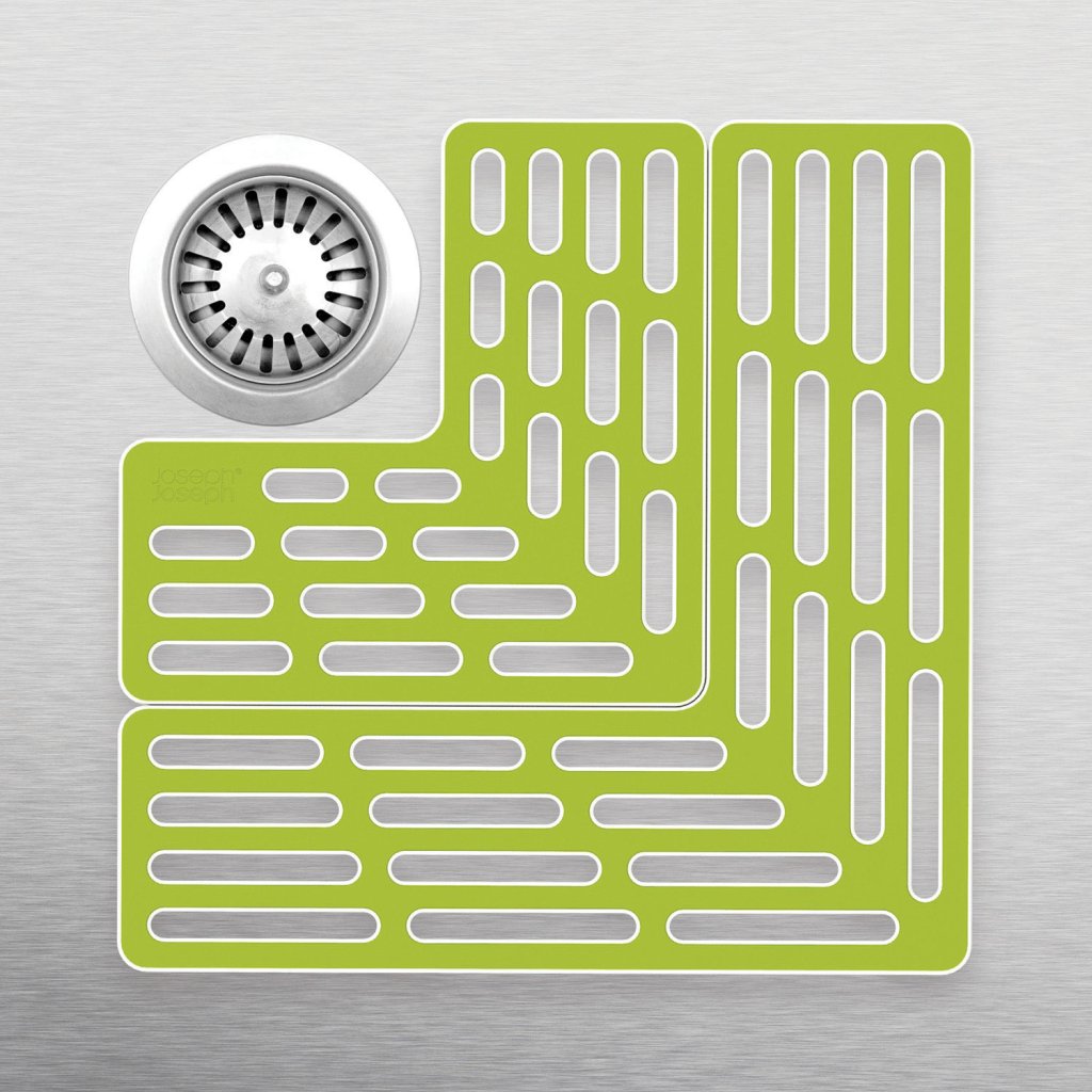 Bij het wassen van delicate vaat is een gootsteenbeschermer essentieel om te voorkomen dat de vaat tegen de harde gootsteen botst. De slimme rubberen Sink Saver pad bestaat uit twee componenten die modulair kunnen worden samengesteld, zodat de ruimte boven de afvoer van de gootsteen altijd vrij blijft. De antislipvoetjes zorgen voor een natuurlijke watercirculatie, maar ook voor luchtcirculatie tussen de wasbeurten door.