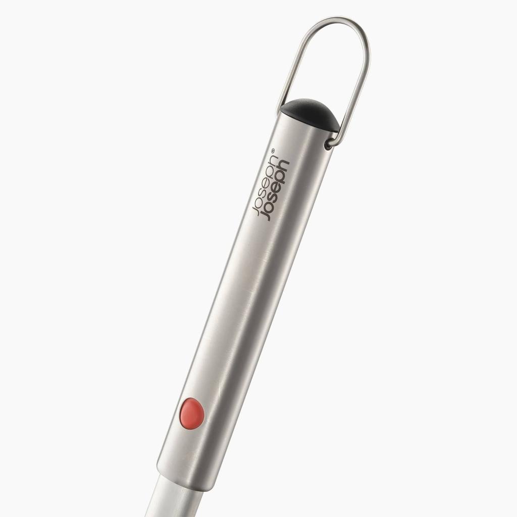 - Het uitschuifbare handvat maakt verlenging mogelijk bij het werken bij een hete grill en vervolgens inschuiven voor ruimtebesparend opbergen.