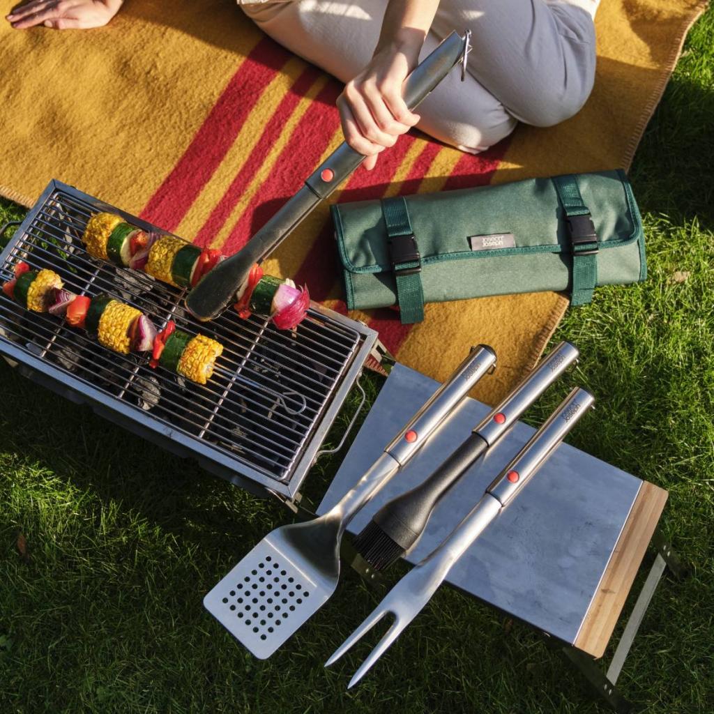 - Grillvork Joseph Joseph GRILLOUT is een betrouwbaar hulpmiddel om vlees en andere ingrediënten gemakkelijk te draaien, te spiesen en te dragen tijdens het barbecueën in de buitenlucht.