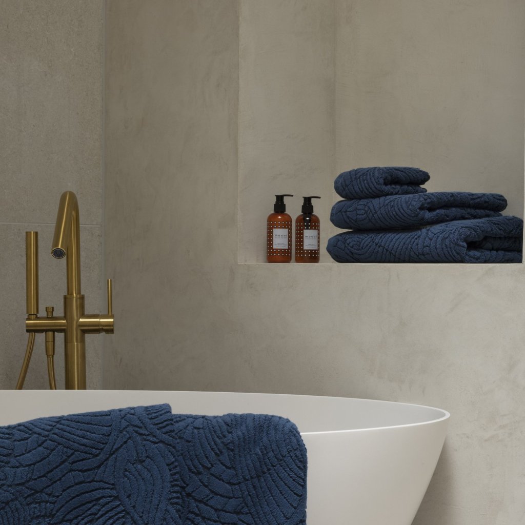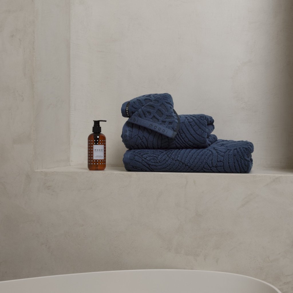 - donkerblauw handdoek / de handdoek maakt deel uit van de Extinct Animals-collectie, geïnspireerd op uitgestorven dieren - in dit geval de zachte veren van de Dodo-vogel
