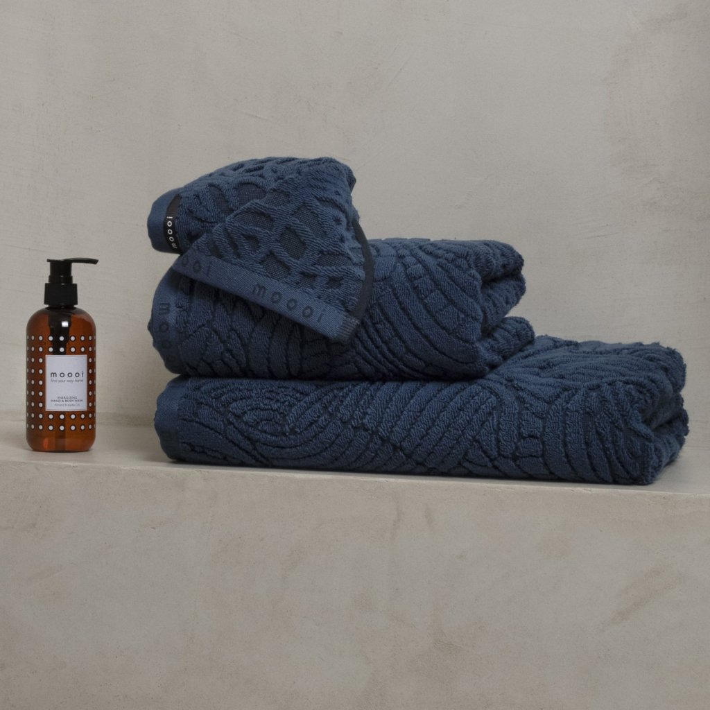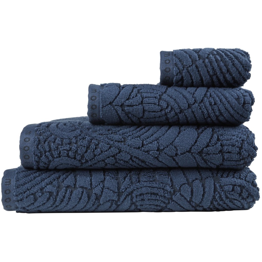 - donkerblauw handdoek / de handdoek maakt deel uit van de Extinct Animals-collectie, geïnspireerd op uitgestorven dieren - in dit geval de zachte veren van de Dodo-vogel