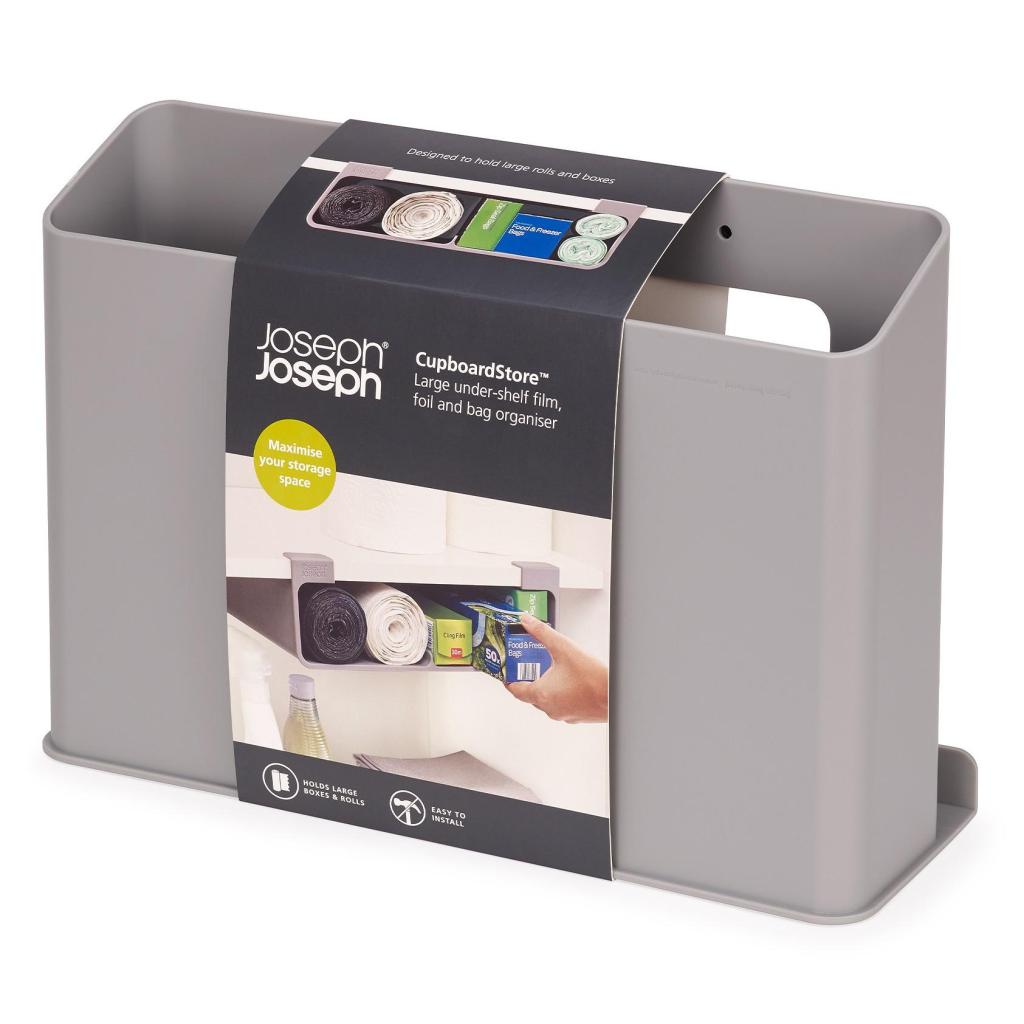 - De Joseph Joseph CUPBOARDSTORE organizer maakt het mogelijk om de vrije ruimte onder de plank van een keukenkastje te benutten en creëert een praktische opbergruimte voor keukenfolie, aluminiumfolie of zakken.