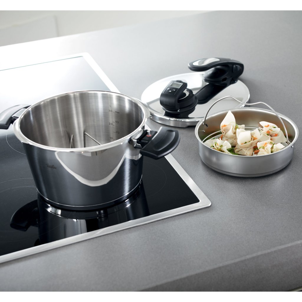 De ongeperforeerde inzet is ontworpen voor vitavit® snelkookpannen met een diameter van 26 cm. Met dit accessoire kunt u ook voedsel met sap in de pan bereiden of ontdooien in het inzetstuk.
