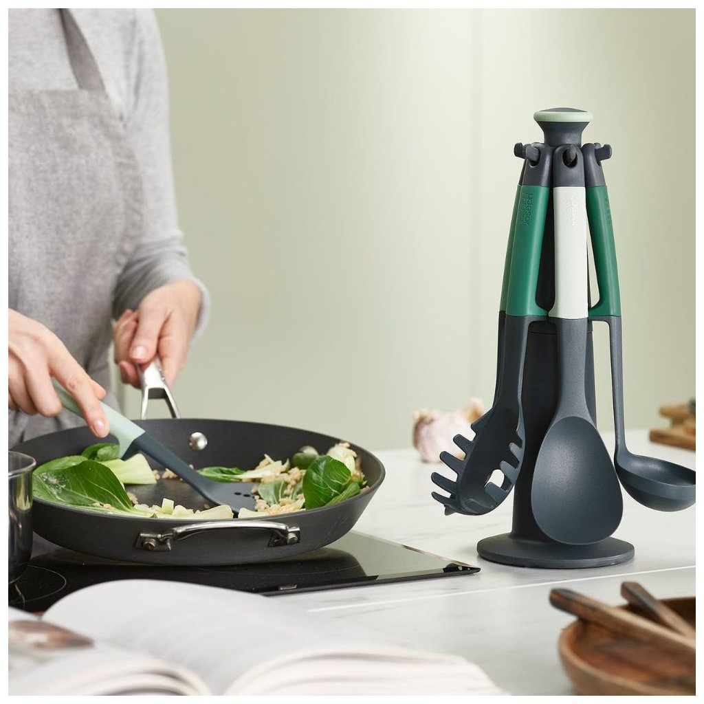 Keukengerei-set ELEVATE 10540, 6-delig, met houder, grijs / groen, Joseph Joseph