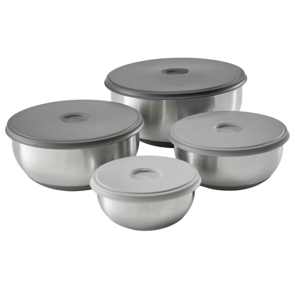 Keukenkommen-set NEST PREP&STORE 95025, 4 kommen met deksel, roestvrij staal, Joseph Joseph