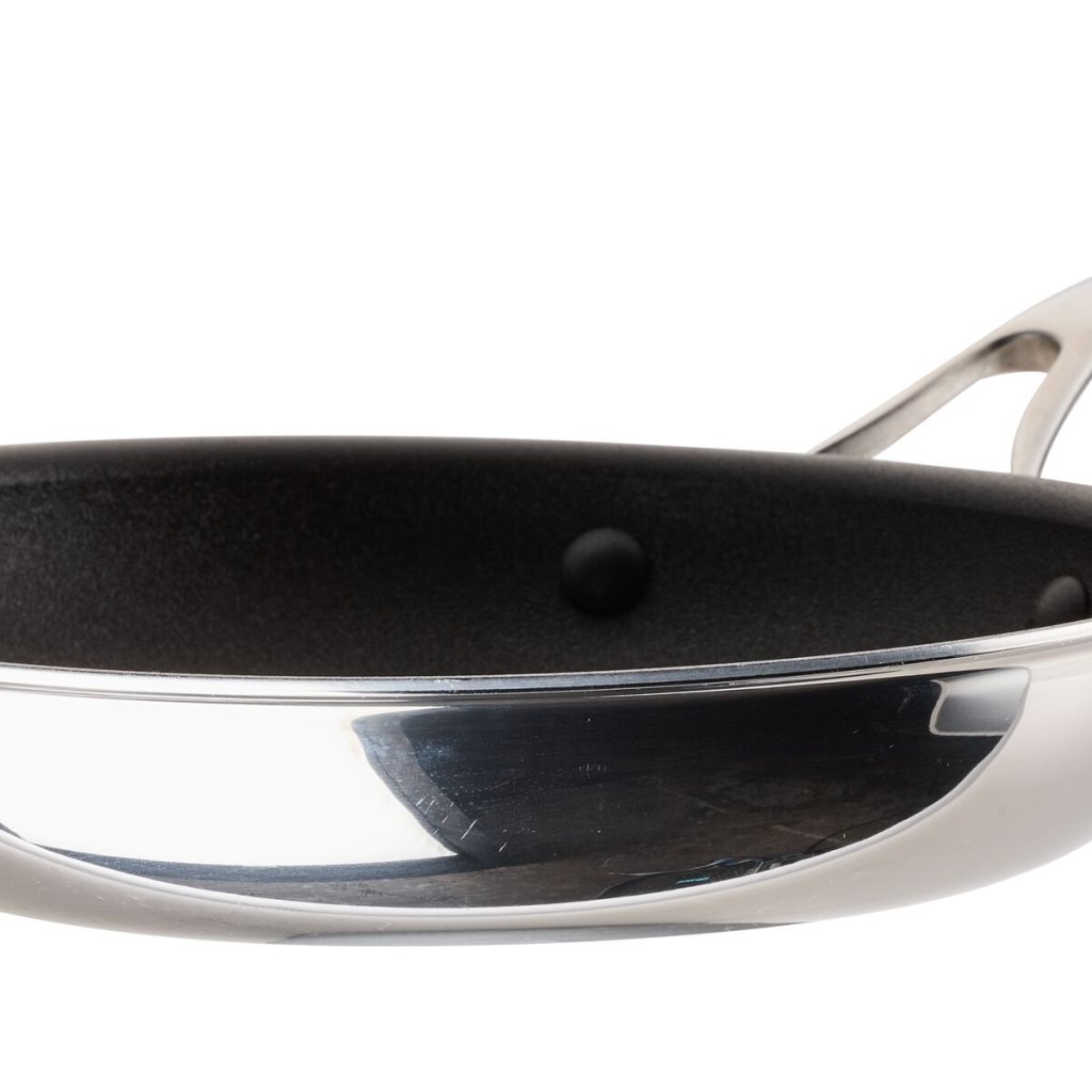 - de stevige constructie van de pan maakt gebruik van een sterke aluminium kern voor een uitzonderlijke warmteverdeling en een hoogglans gepolijste roestvrijstalen buitenlaag voor een eersteklas uiterlijk en prestaties