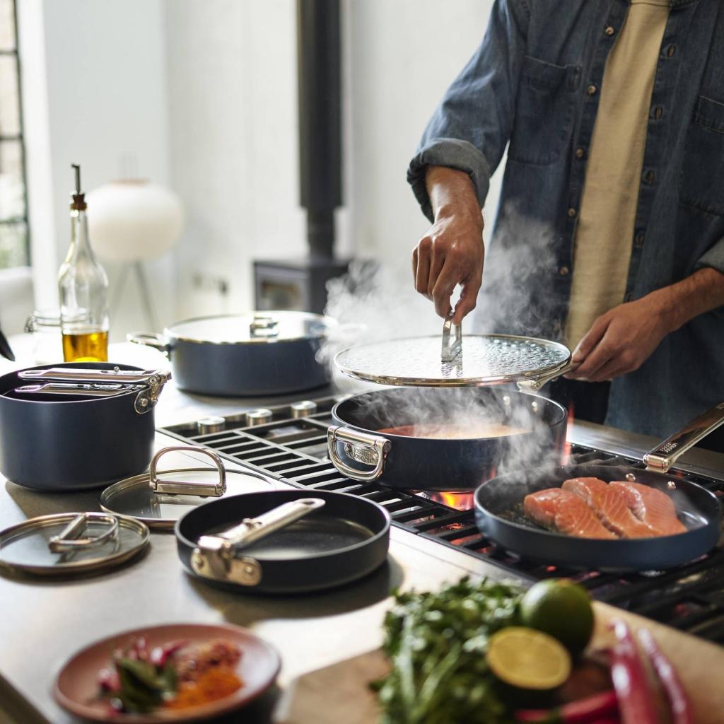 - Het elegante Midnight Blue-design geeft de pan een moderne uitstraling en onderstreept het hoogwaardige karakter van de gehele SPACE-serie.