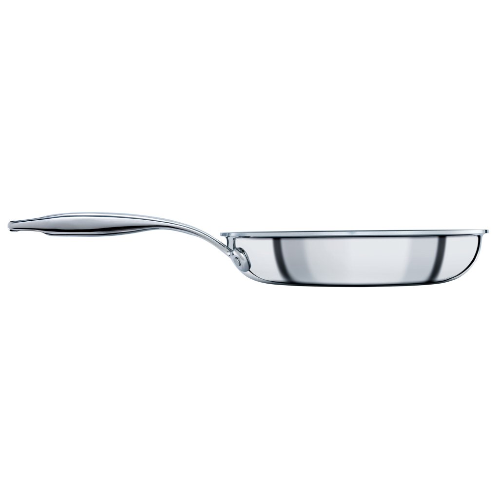 - de drielaagse constructie met aluminium kern zorgt voor een snelle en gelijkmatige warmteverdeling over het hele oppervlak van de pan, waardoor de temperatuur tijdens het koken nauwkeurig kan worden geregeld