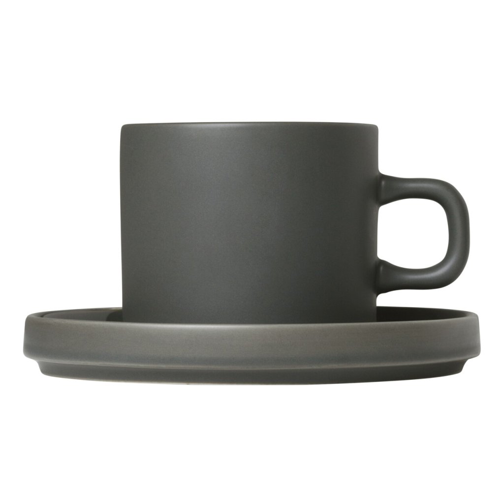 Koffiekopje met schoteltje PILAR, set van 2 stuks, 200 ml, kaki, Blomus