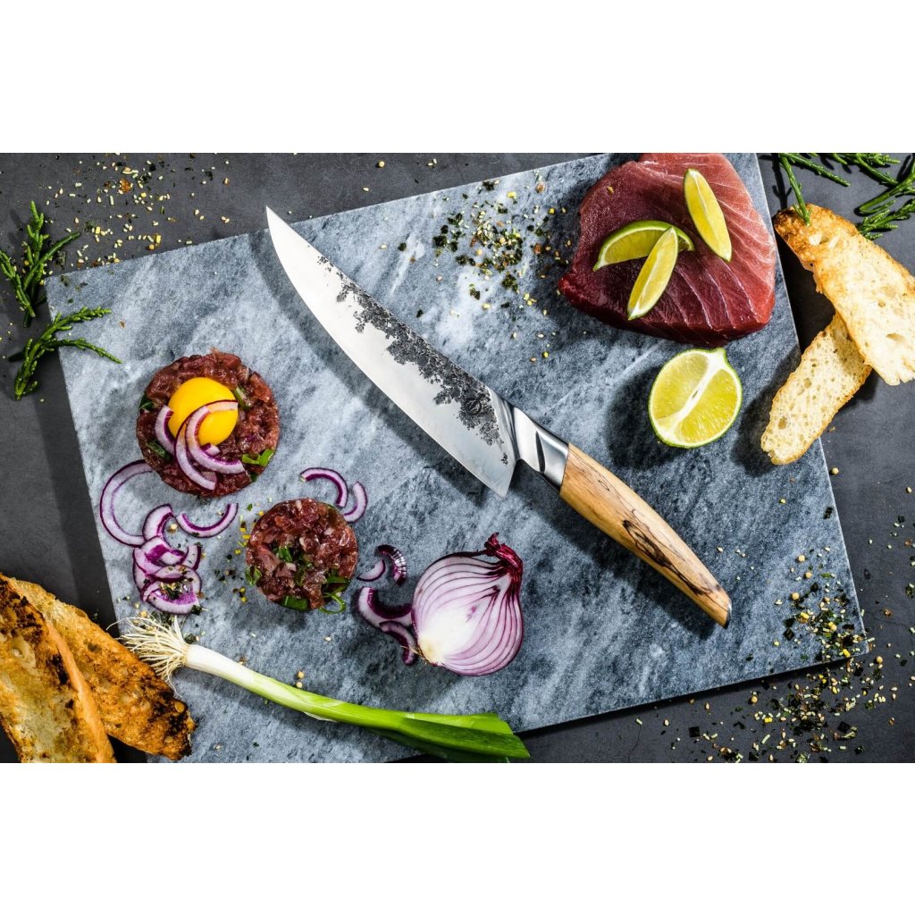 Met dit universele koksmes Forged met lemmetlengte 20,5 cm kunt u handig groenten, vlees, champignons en nog veel meer snijden, hakken en in blokjes snijden.