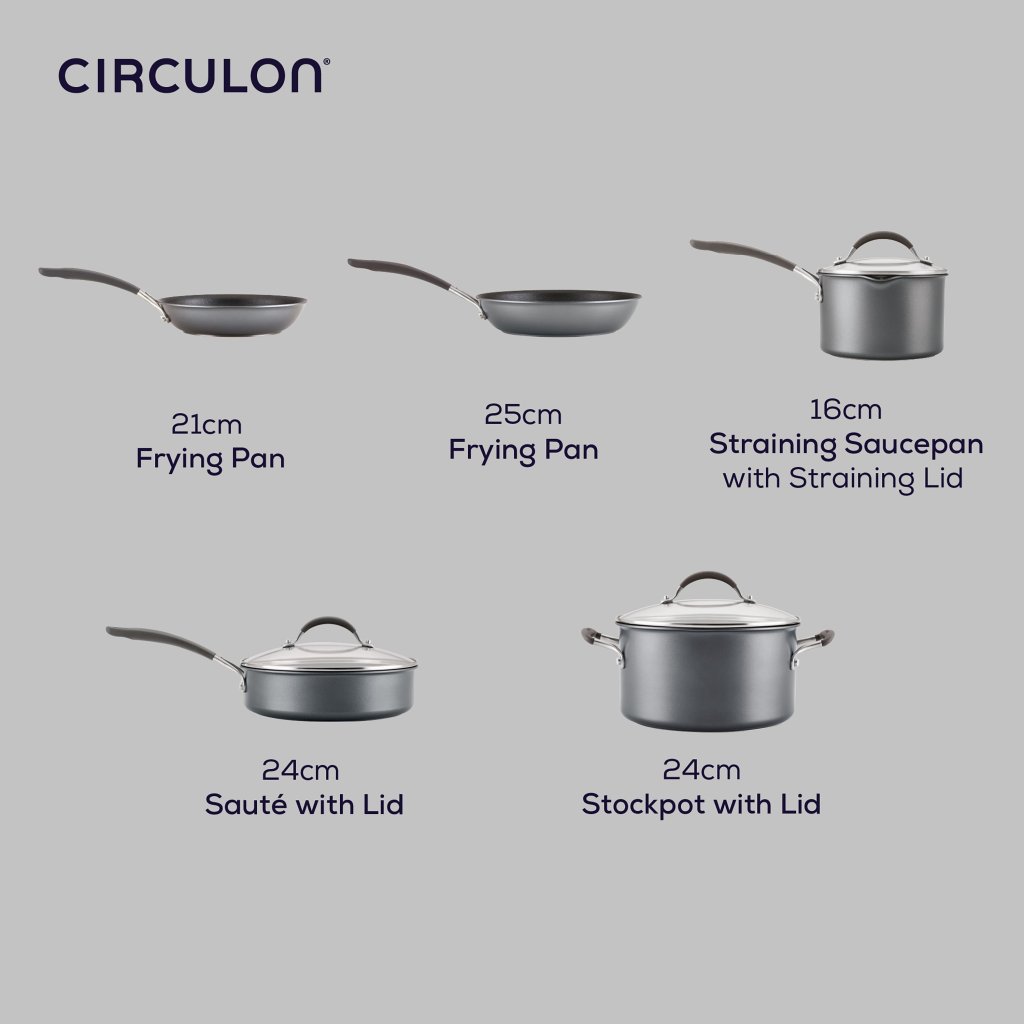 - set van 5 innovatieve antiaanbakpannen en pannen Circulon SCRATCHDEFENSE A1 biedt revolutionaire krasbestendigheid en extreem lange levensduur