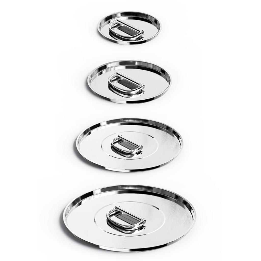 - De roestvrijstalen deksel zijn voorzien van inklapbare roestvrijstalen handgrepen voor economische opslag en dankzij hun ontwerp kunnen ze compact in een standaard worden opgeborgen.