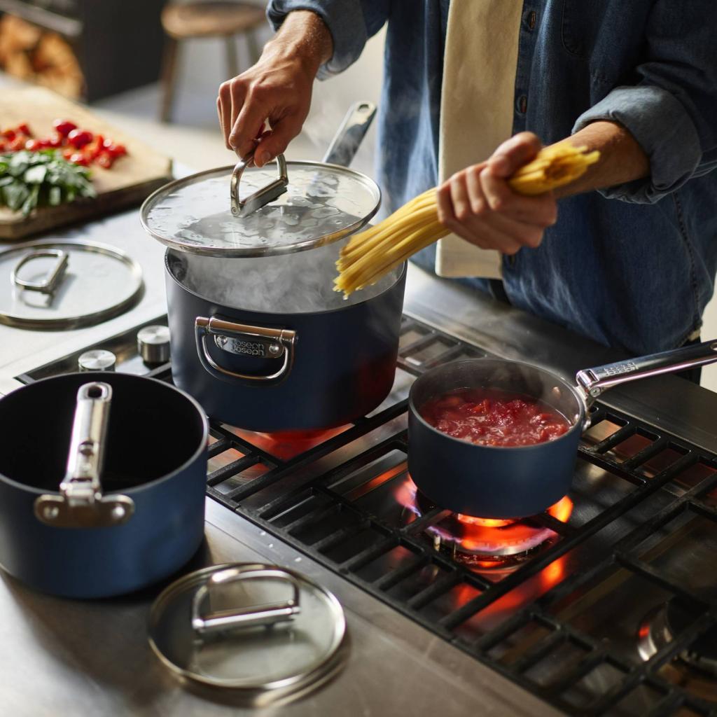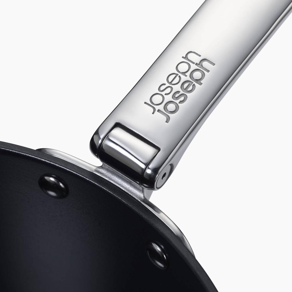 Kookgerei dat de realiteit van de moderne keuken begrijpt - Joseph Joseph SPACE. Tijdens het koken staat hij stevig en zeker, klaar om alles aan te kunnen, van een snel ontbijt tot een geïmproviseerd diner. Maar als het tijd is om op te ruimen, verandert hij van karakter en past hij zich onopvallend aan de ruimte aan, zonder meer ruimte in te nemen dan strikt noodzakelijk. Wat wil je nog meer?