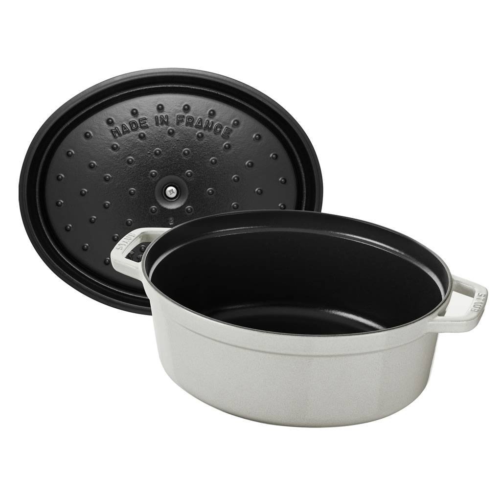 De ovale gietijzeren pan is een tijdloos hulpje voor stoven, bakken, soepen en eenpansgerechten. Alles koken in een STAUB geëmailleerde gietijzeren pot of "COCOTTE" is heel eenvoudig. Staub De ovale pan is een must-have in de keuken, iedereen zou er een moeten hebben. De pan creëert een verbinding tussen het fornuis en uw tafel, zodat u direct vanaf het fornuis kunt serveren. Uw eten blijft op temperatuur en staat mooi op tafel.