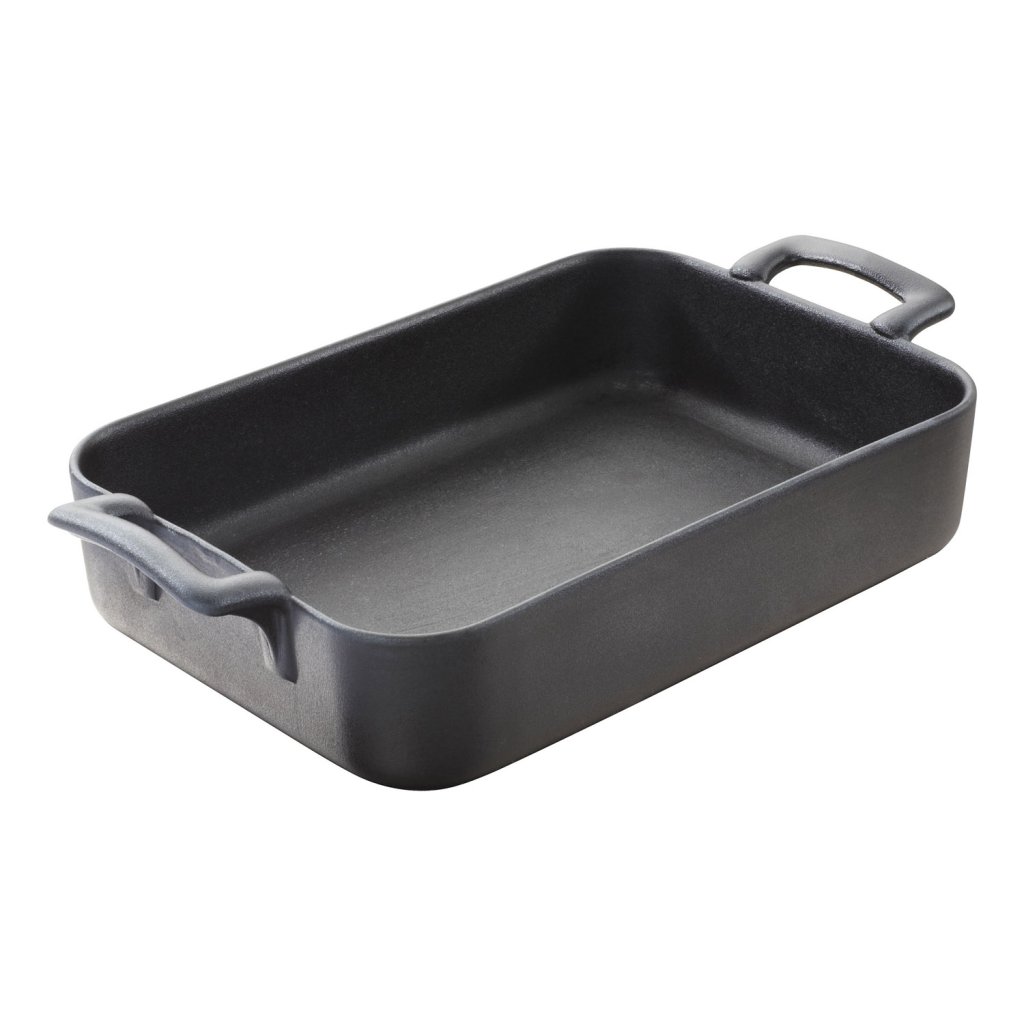 In de rechthoekige ovenschaal V 1,7 l gietijzer zwart Belle Cuisine kunt u gebakken aardappelen, lasagne, geroosterde groenten, diverse knoedels, gebraad enz. bereiden. Bij het opdienen zal het een decoratie van uw tafel zijn dankzij zijn elegante vorm.