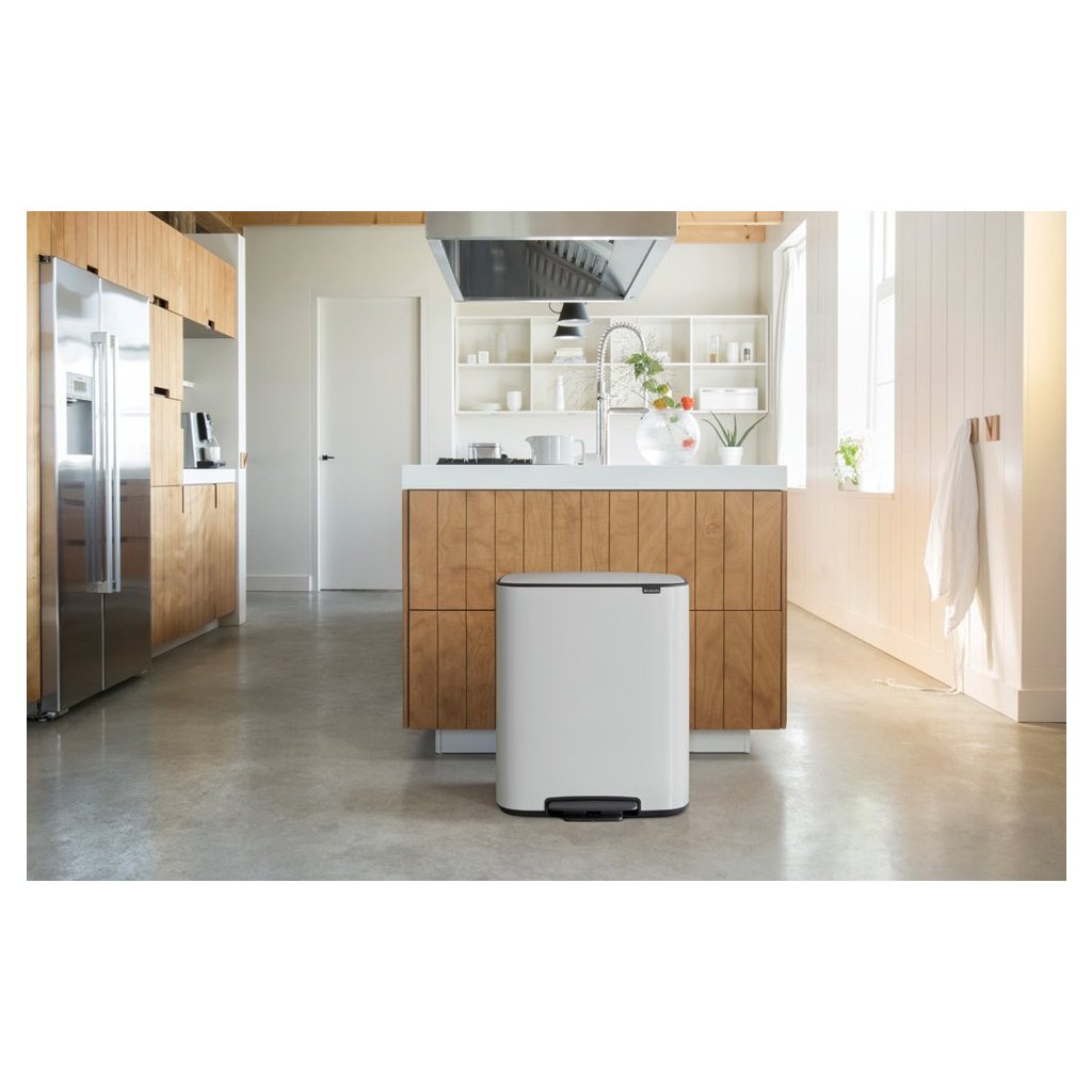 Op zoek naar een aangename afvaloplossing voor uw gezinsleven? Deze pedaalmand van Bo combineert een mooi ontwerp met een grote capaciteit. Het kleeft mooi aan de muur, de antislip onderkant beschermt de vloer en zorgt voor een grote stabiliteit. Dankzij het ingebouwde mechanisme sluit het deksel langzaam en zeer stil. Gemaakt van hoogwaardige materialen - 10 jaar garantie.