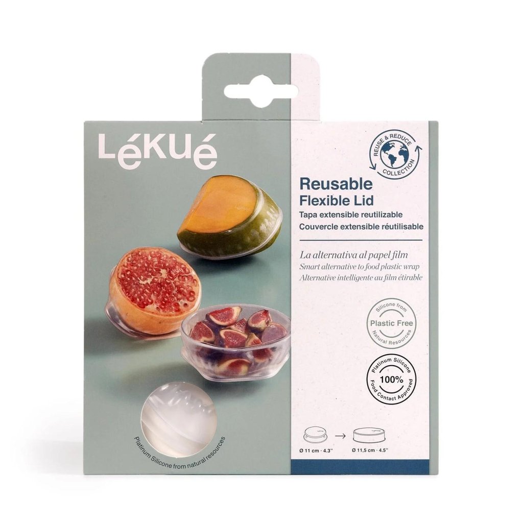 - Dit herbruikbare siliconen deksel Lékué met een diameter van 11 cm wordt gebruikt om voedsel te bewaren als praktisch alternatief voor wegwerpverpakkingen.