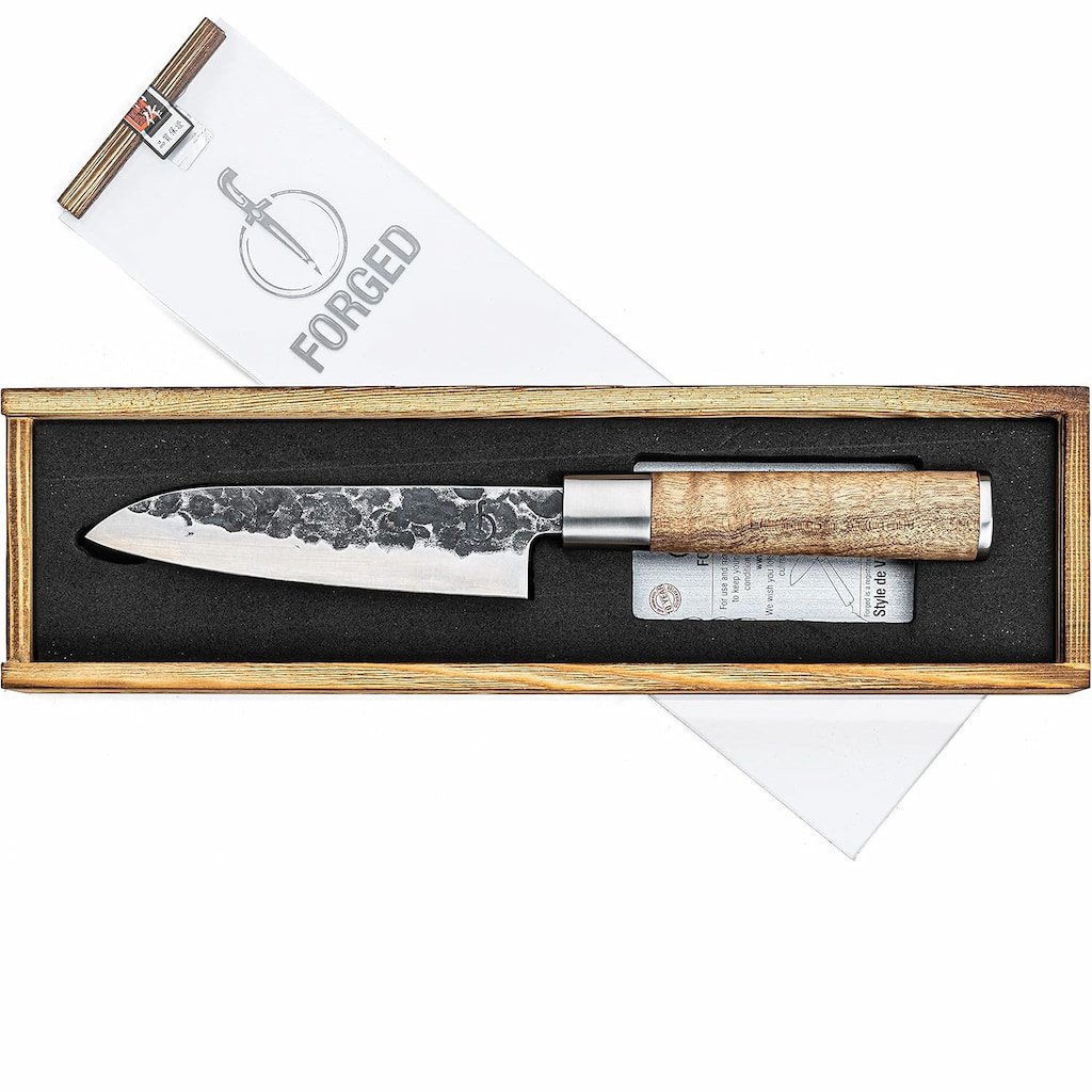 - japans mes Santoku Forged VG10 met een lemmet van 14 cm is een onmisbare hulp bij dagelijkse keukentaken, van het fijn snijden tot het hakken van kruiden