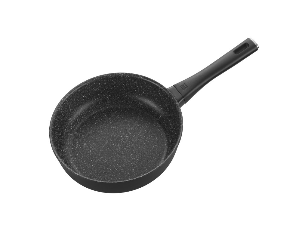 De diepe pan met antiaanbaklaag biedt veel ruimte voor het werken met grotere hoeveelheden voedsel of voor ingrediënten die tijdens de bereiding van volume veranderen, bijv. Champignons of spinazieblaadjes. Als u eten bereidt voor meerdere personen, kunt u er zeker van zijn dat de inhoud van de pan tijdens het roeren veilig op zijn plaats blijft. Het antiaanbakoppervlak en de hoge rand maken de pan ideaal voor het braden van groenten, pastagerechten of rijst, waarbij u de maaltijd direct in de pan kunt afmaken. De solide kern van gesmeed aluminium verdeelt de warmte naar de rand van de pan en de inhoud wordt gelijkmatig verhit. Het antiaanbakoppervlak van de DURASLIDE® GRANITE pan bestaat uit 3 lagen. De titanium basislaag verhoogt extreem de slijtvastheid en krasbestendigheid op lange termijn. Dankzij de magnetische roestvrijstalen bodemlaag kan de pan worden gebruikt voor inductie. De maximale antikleefeigenschappen komen ook tot uiting in het reinigingsproces van de pan, waar het vuil moeiteloos van het oppervlak glijdt. Het ergonomische plastic handvat zorgt voor een comfortabele en veilige grip