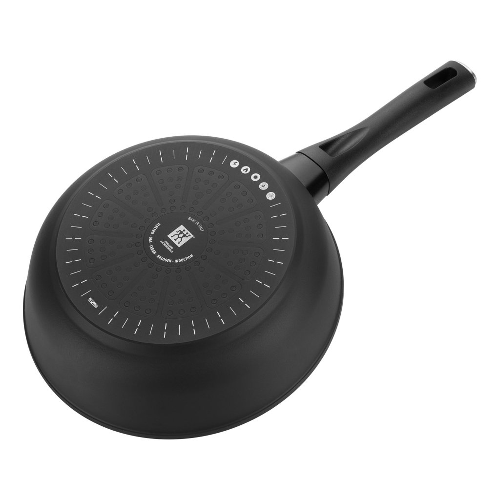 De diepe pan met antiaanbaklaag biedt veel ruimte voor het werken met grotere hoeveelheden voedsel of voor ingrediënten die tijdens de bereiding van volume veranderen, bijv. Champignons of spinazieblaadjes. Als u eten bereidt voor meerdere personen, kunt u er zeker van zijn dat de inhoud van de pan tijdens het roeren veilig op zijn plaats blijft. Het antiaanbakoppervlak en de hoge rand maken de pan ideaal voor het braden van groenten, pastagerechten of rijst, waarbij u de maaltijd direct in de pan kunt afmaken. De solide kern van gesmeed aluminium verdeelt de warmte naar de rand van de pan en de inhoud wordt gelijkmatig verhit. Het antiaanbakoppervlak van de DURASLIDE® GRANITE pan bestaat uit 3 lagen. De titanium basislaag verhoogt extreem de slijtvastheid en krasbestendigheid op lange termijn. Dankzij de magnetische roestvrijstalen bodemlaag kan de pan worden gebruikt voor inductie. De maximale antikleefeigenschappen komen ook tot uiting in het reinigingsproces van de pan, waar het vuil moeiteloos van het oppervlak glijdt. Het ergonomische plastic handvat zorgt voor een comfortabele en veilige grip