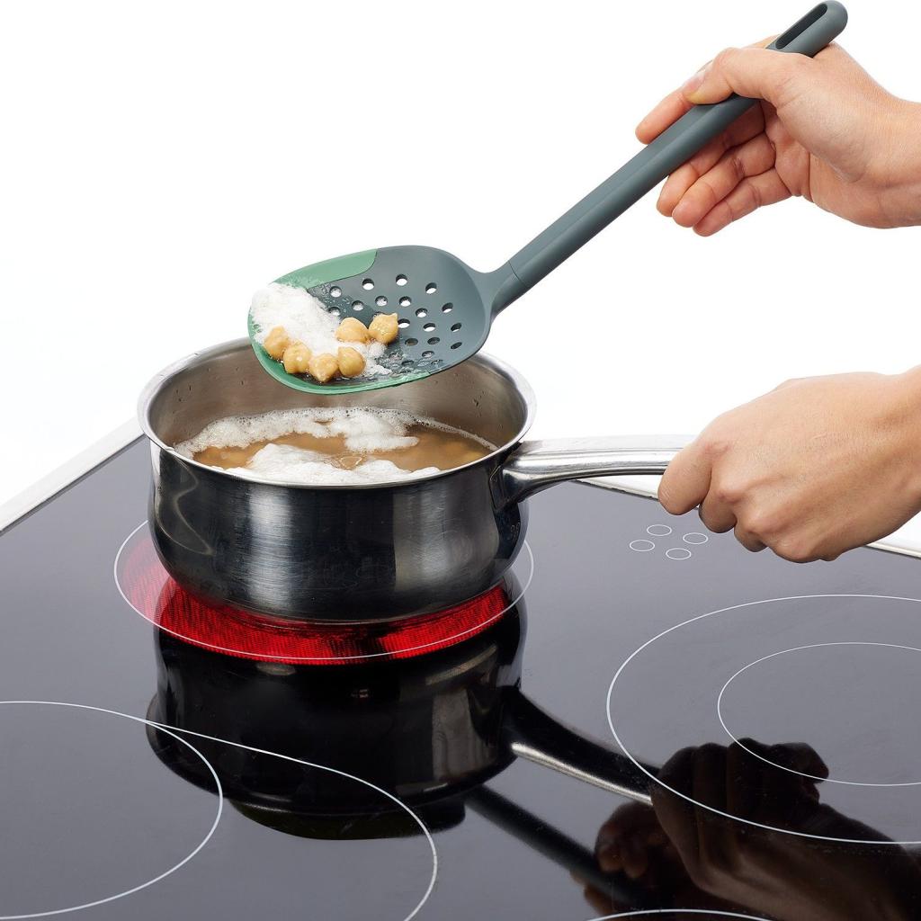 - De flexibele siliconen tip beschermt je kookgerei tegen krassen, zelfs bij gebruik in pannen met antiaanbaklaag.