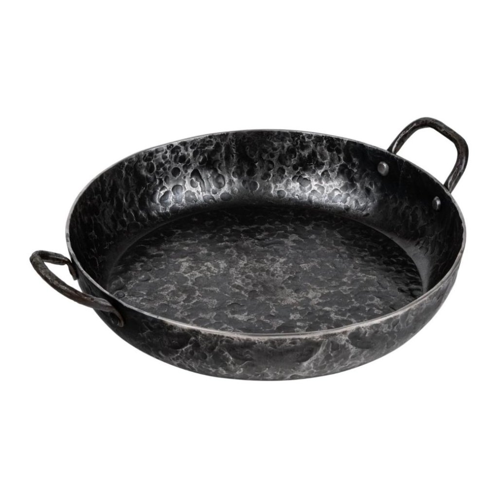 - Het smeedwerk geeft de pan een opvallend karakter en wekt de indruk van een eerlijk handgemaakt gebruiksvoorwerp dat niet over het hoofd gezien zal worden in de keuken.