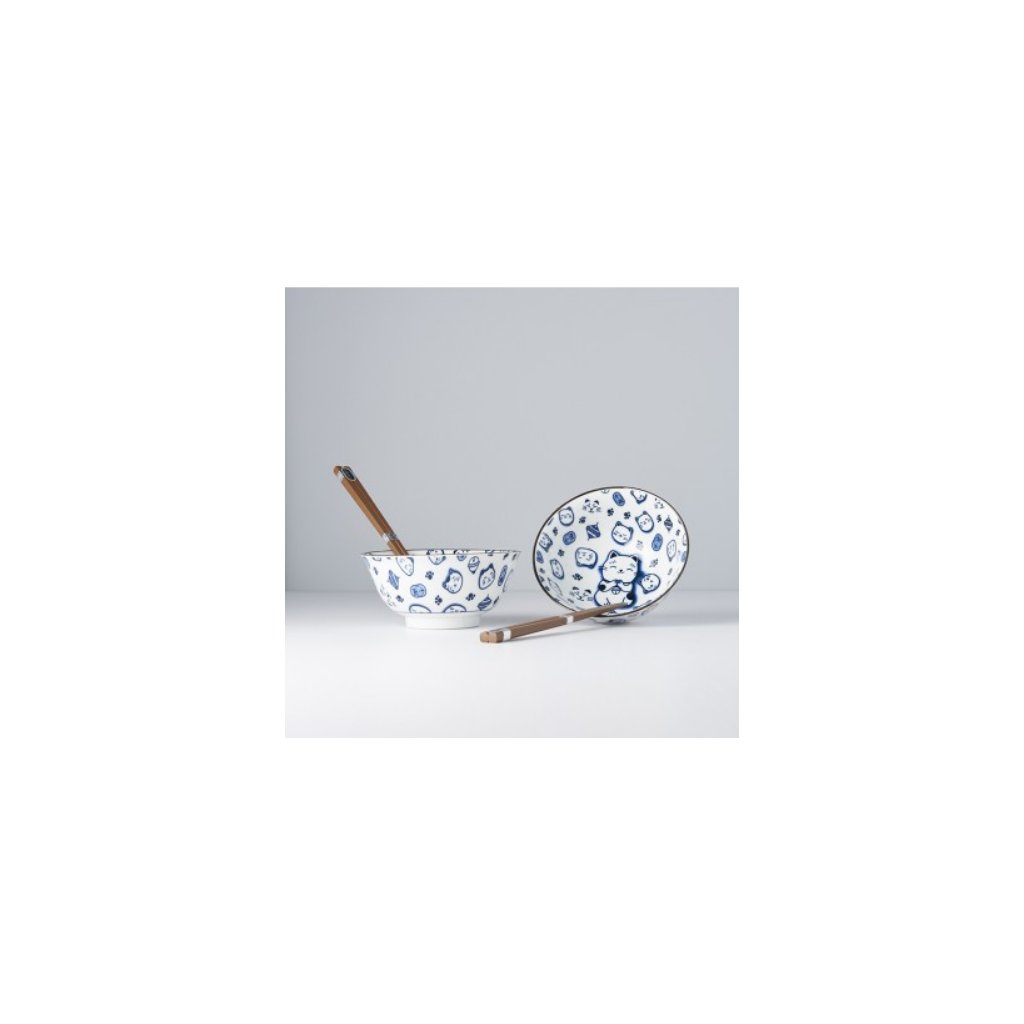 Kom met eetstokjes (set) MANEKI CAT BLUE 400 ml, 2 kommetjes, MIJ
