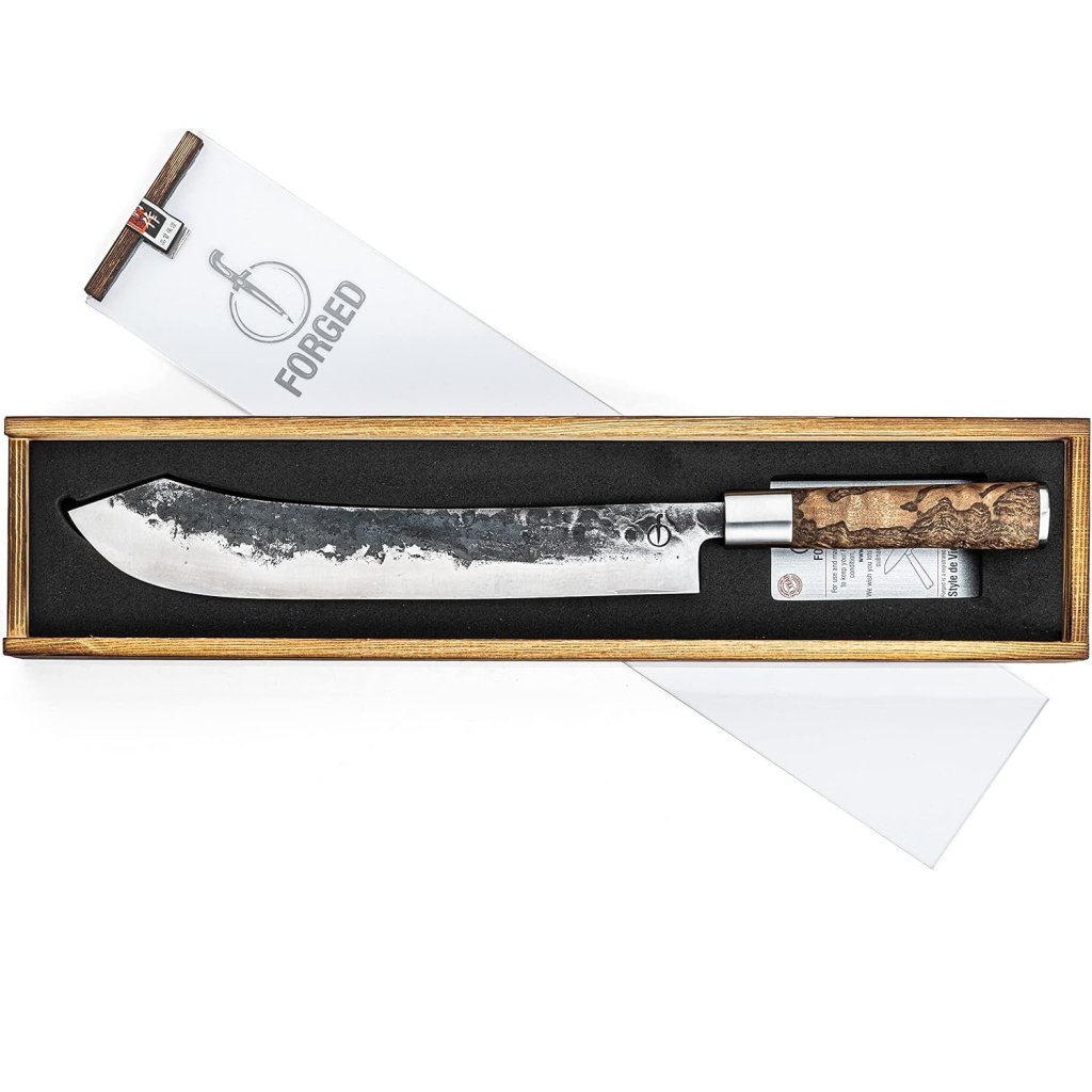 - slagersmes Forged VG10 met een lemmetlengte van 25,5 cm is ontworpen voor het efficiënt portioneren van grotere stukken vlees met de nadruk op precisie en een gladde snede