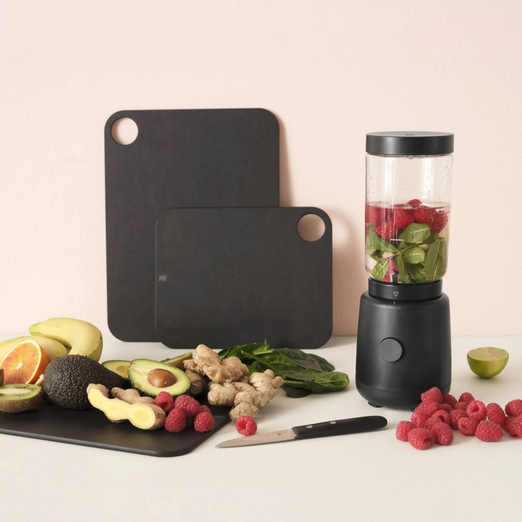 - gemaakt van hoogwaardig geperst houtvezel, dat sterk is, maar ook zacht voor het lemmet van keukenmessen